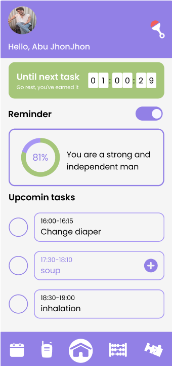 has all the necessary knowledge to care for the baby, can monitor the baby’s condition via a dashboard and stay in control even when not present. They enter tasks for secondary Guardians to ensure proper care.