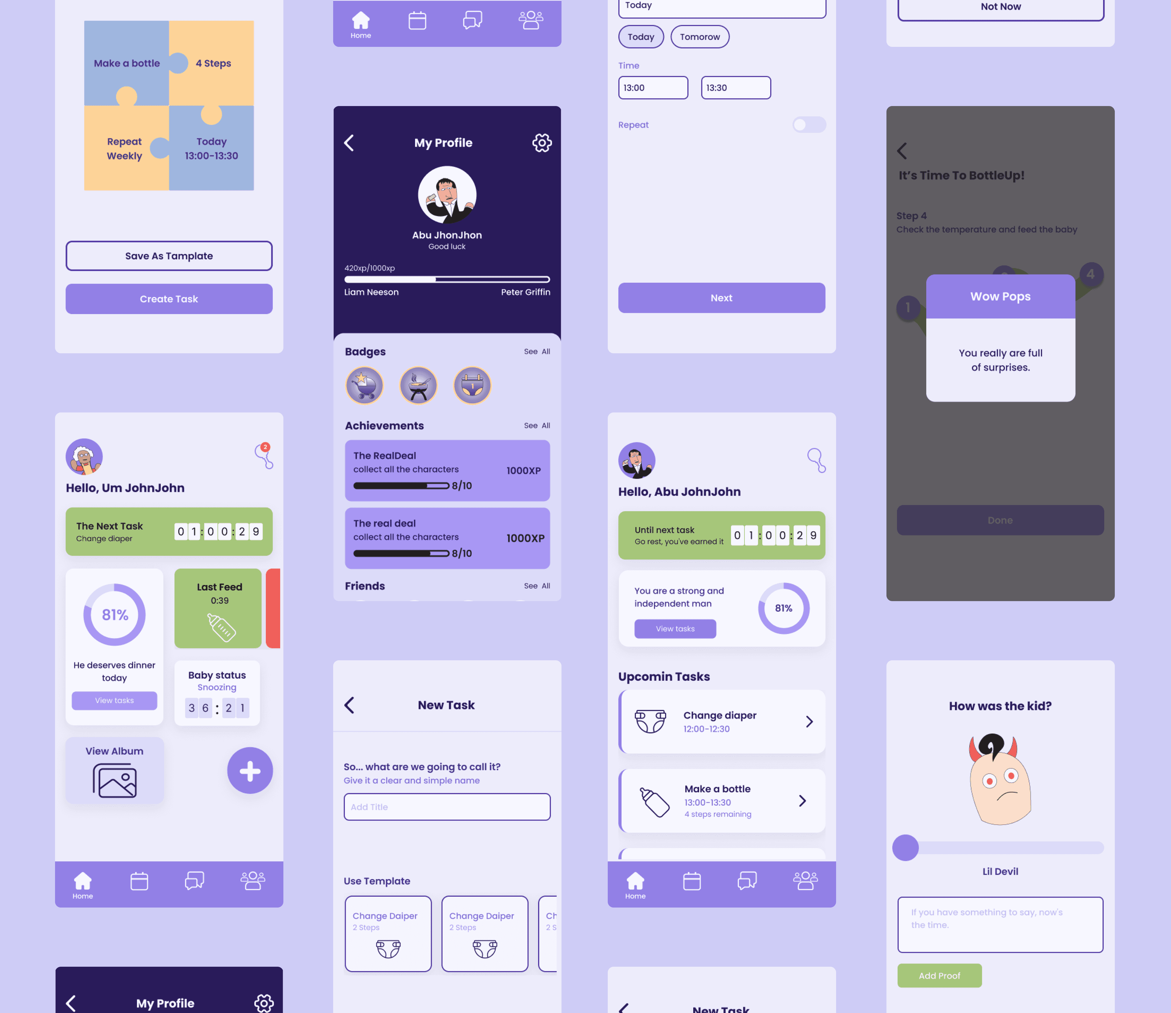 Taking care of a child is motivation in itself but for those who need extra encouragement, I created characters and badges that can be collected by completing various tasks.